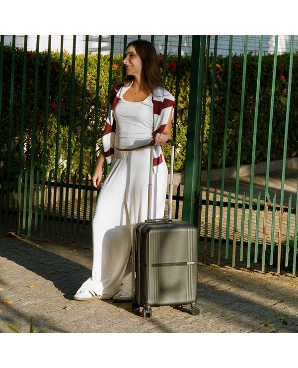 Viagem mais prática, organizada e com muito mais espaço: uma mala de bordo resistente com sistema a vácuo para compactar roupas e otimizar cada centímetro da bagagem.