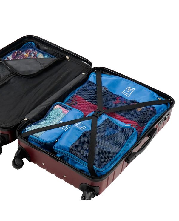 Cadeado com senha • 4 rodas • Rodas 360° • Rodas removíveis • Compartimentos com zíper • Cinta elástica